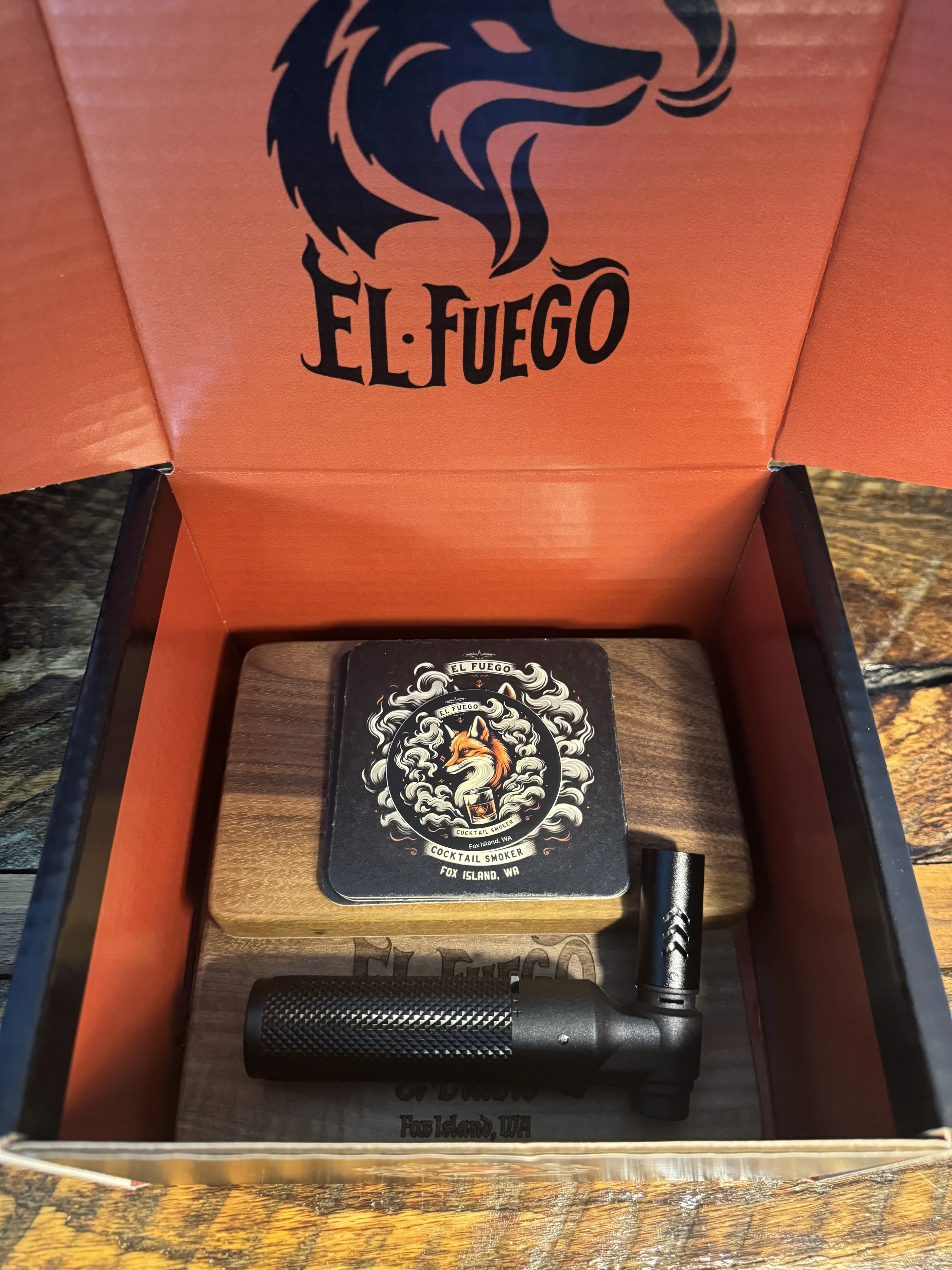 El Fuego Cocktail Smoker El Fuego Smoking Kit $295.00 El Fuego Wood Shavings (4) $25.00 El Fuego Cocktail Glasses (4) $95.00 Heritage In-Store El Fuego Kit $295.00 El Fuego Smoker Collection